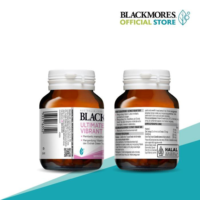 What is Blackmores Ultimate Vibrant Skin? Mengandung vitamin C untuk membantu pembentukan kolagen. Mengandung Zinc, Glutathione, dan ekstrak green tea yang merupakan antioksidan untuk membantu meredam radikal bebas.