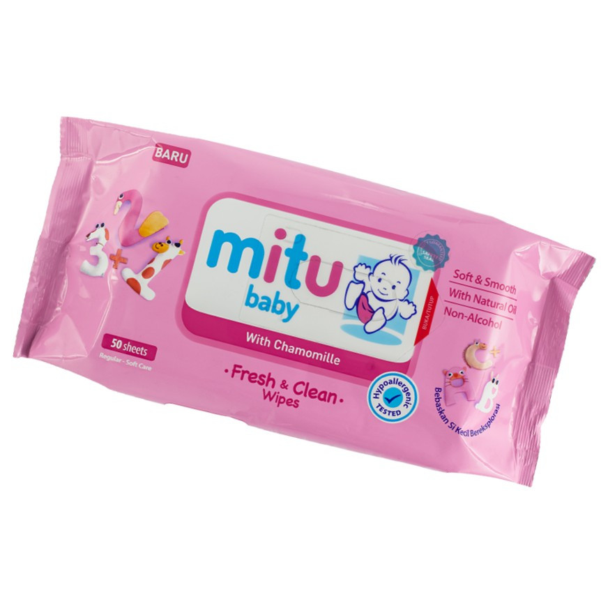 Mitu Baby pack Reguler Soft Care 50 - Pink adalah tisu untuk membersihkan muka, tangan, dan kaki si kecil. Rasakan kelembutan yang maksimal dari tisu Mitu ini untuk si kecil.