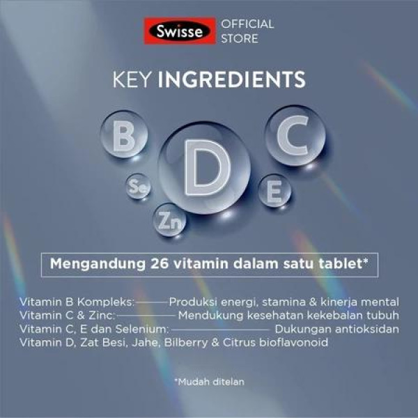 - Mengandung 26 vitamin dalam satu tablet yang mudah ditelan.