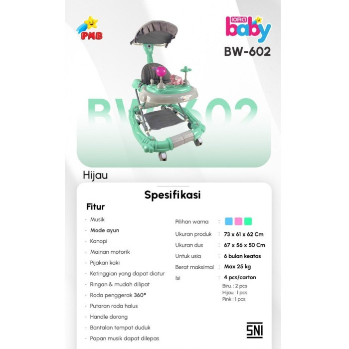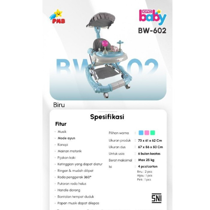 ▶️ Kanopi: Dilengkapi dengan kanopi yang dapat melindungi bayi Anda dari sinar matahari langsung.